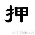 同“压”, 用于“押宝”、“押队”、“押韵”。